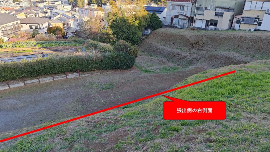 位置関係が分かりづらいですが、赤線が張出の右側面になります。