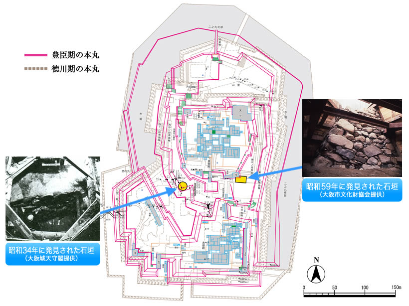 本丸については、中井家に伝わる「豊臣大坂城本丸図」の発見により徳川大坂城と豊臣大坂城の対比ができるようになり、徳川大坂城再築の内容がわかってきています。