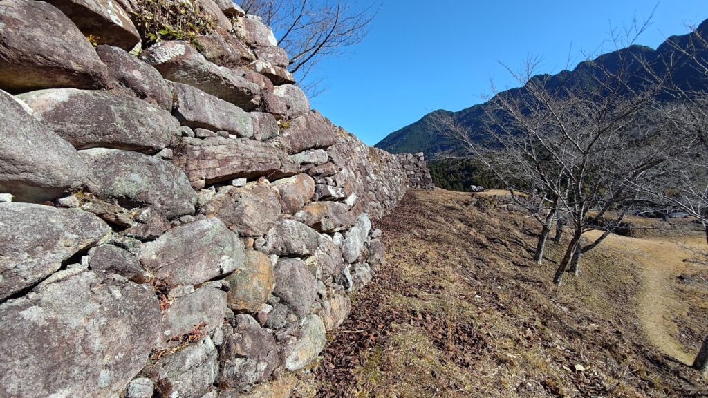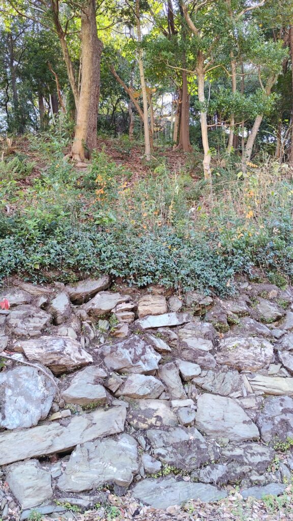 なお、本丸御殿跡の形状は、同じく藤堂高虎が築いた「赤木城(三重県)」の主郭の形状と酷似しています。